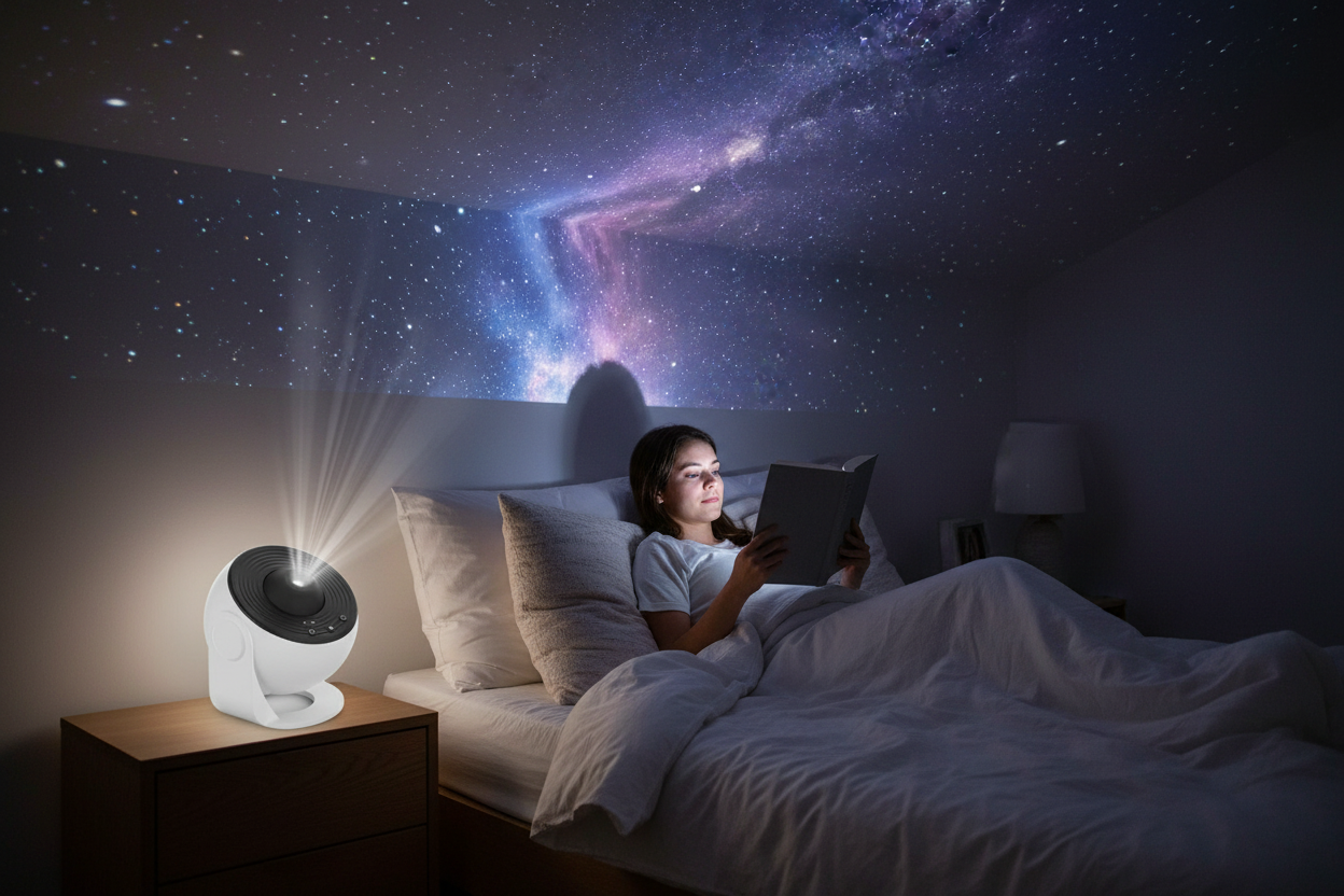 Na een lange dag blijft je hoofd vaak nog “aan” staan, zelfs als je al in bed ligt. CELESTARA™ creëert in één klik een kalmerende sterrenhemel die je zintuigen focust en je brein automatisch in rustmodus zet. Het zachte licht en de langzame beweging zorgen voor een gevoel van veiligheid en geborgenheid. Hierdoor valt ontspannen — en inslapen — weer vanzelf.